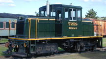 General Electric locomotive #7258. Built in 1942, this ex-Army locomotive was acquired from a steel mill in Birdsboro, Pennsylvania in 1997. WK&S volunteers poured their hearts into #7258. Among other things, they rebuild one of the two diesel engines, rewired the locomotive and performed a complete cosmetic restoration. #7258 is in charge of most of the yard work and pulls the passenger trains when the steam engine isn't used during the slow months of the summer season. #7258 also allows for off-season charters after the steam locomotives have been winterized. #7258 is the "Cadillac" of the railroad - an absolute pleasure to operate.