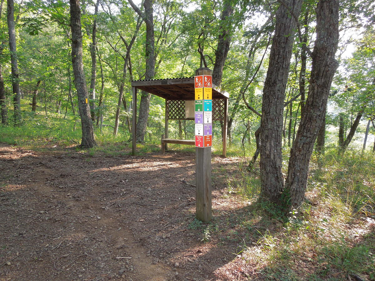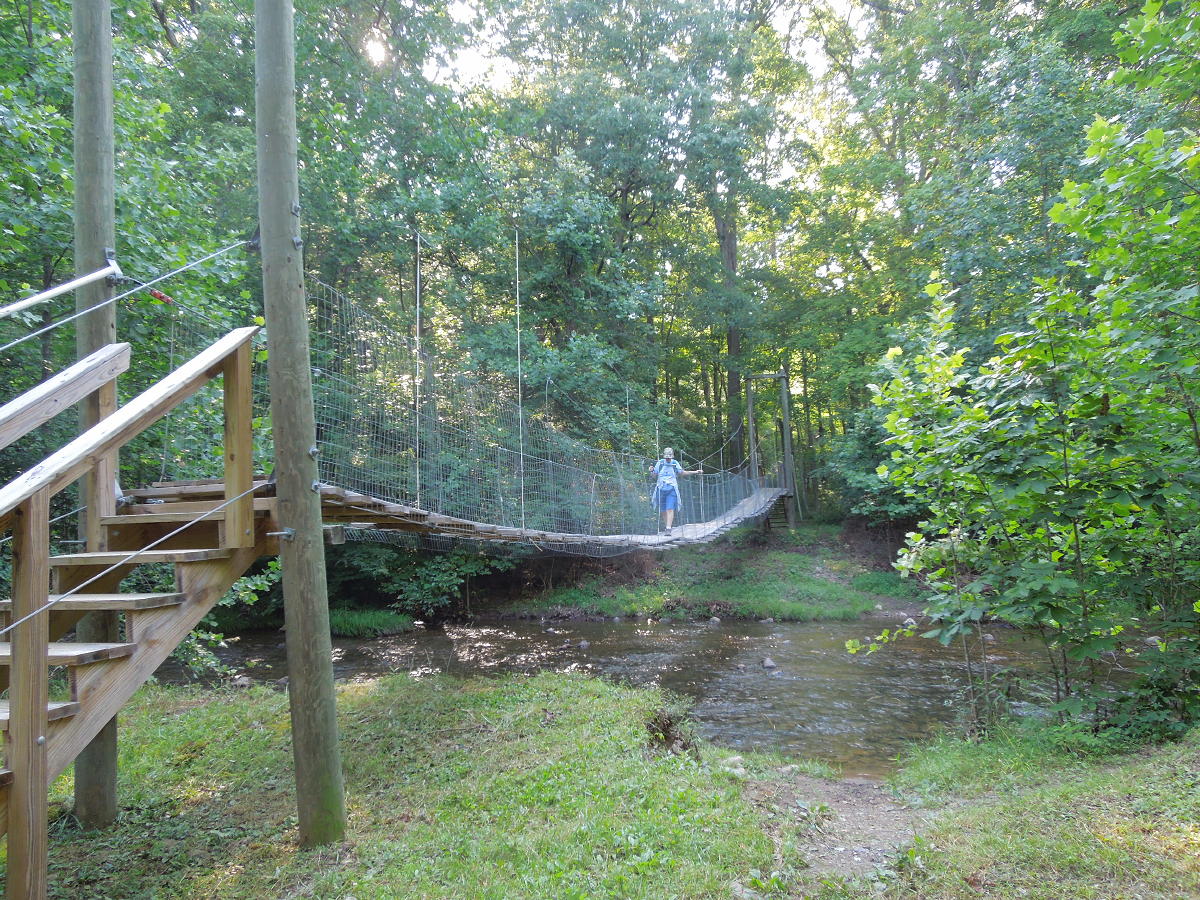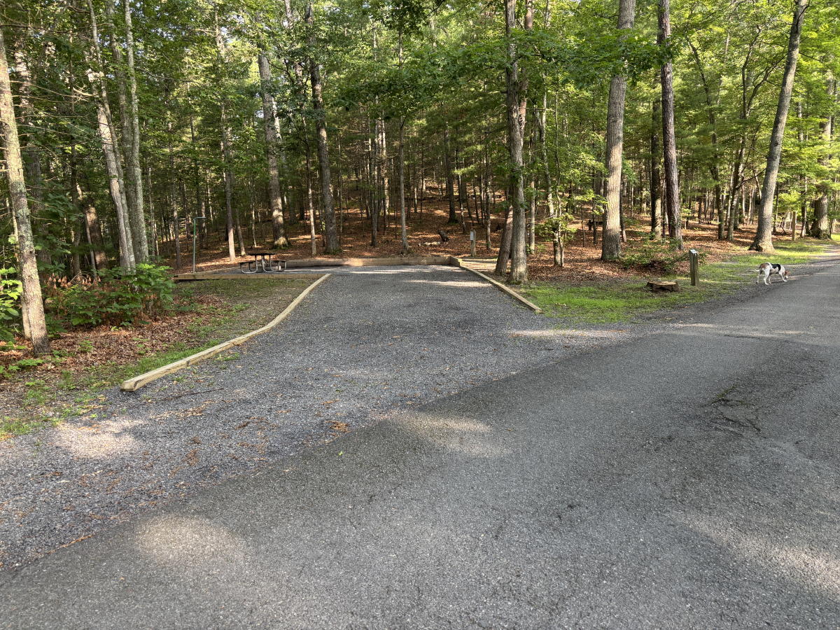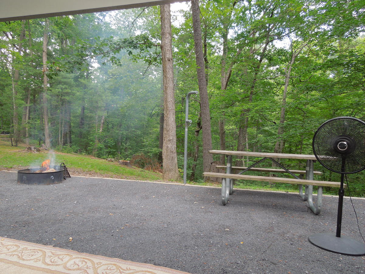 Shenandoah River State Park near Front Royal. 2024/August - Another good stay in site 8. Nice weather. A big tree fell and took out the little trail behind the campsite. The Bear Bottom trail was pleasant and relatively easy. We'll probably never have the energy to do the whole loop. Found a new/unofficial trail between the campground trail and the horse barn. Another good visit to Skyline Caverns, although the corny tour narration gets old. This year we had a cell signal everywhere. 2023/August - Good stay in site 8, which may be our new favorite site. It's perhaps the most secluded site with no visible neighbors. Unlike the other sites in that row, 8 had great afternoon shade. Awning faces southeast so there's some morning sun. If it's going to be hot, it'd be worth putting up the side tarp to the south (rear). In the back corner of the site was our own little private trail to the adjacent meadow. Lots of mystery bug bites. Discovered the Wildcat Ledge trail, which was grueling, but had some great views at the end. Revisited Skyline Caverns, which is always neat. Also visited the Fireball Arcade in Front Royal. It was "okay". Neat to see older games on location. They were playable, but pretty rough. 2021/September - Another good stay in site 13. Everything is now site-specific. 2020/October - The upper loop sites 1-18 are non-specific; the lower loop sites 19-32 are specific reserved. This time we tried site 2. There was a mountain view, but the morning sun was late and the afternoon sun was harsh on the back curbside corner. I'd pick 4-7 over 1-3. 8 looked secluded. No cell signal anywhere. Trail map. 2019/May - Stayed in site 11 (unreserved) which was much like site 13, but maybe a bit more private. They don't appear to be cutting brush between sites so there's a bit more privacy and shade with each passing year. Sites 11 and 13 would be our two first choices. Last visited August 2016. Technically it's called the Raymond R. "Andy" Guest Jr. Shenandoah River State Park. Who would ever remember all that? Specific sites are not reserved. It's first come, first served. Pick up your reservation envelope at the welcome shack then drive around until you find an empty site you like and take it. We took site 13 (unreserved as of 2019). In October 2014 we took site 27 (reserved as of 2019). Both these sites faced north/northeast which is good for avoiding afternoon sun. The elevations were low and the mountain views weren't as good as they could have been. If we go back we might try for pull-through sites 4, 6 or 7 with 4 looking like the best as far as potential views. But 4, 6 and 7 are a bit smaller and less private. Site map. The park's website wasn't clear about dumpsters and dump stations, but both are located at the top of the hill by the entrance to the campsite area. Firewood with an honor box was by the camp host site. Great hiking. The lower trails by the river were easily bikeable. Great views from the visitor center and Culler's overlook. Front Royal had a nice little downtown historic area around East Main and Chester Streets. We didn't try any restaurants, but there were a few with outside seating. Skyline Caverns is worth a visit. The north end of Skyline Drive was also nearby.