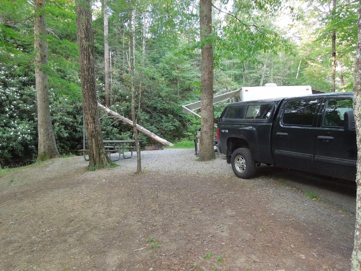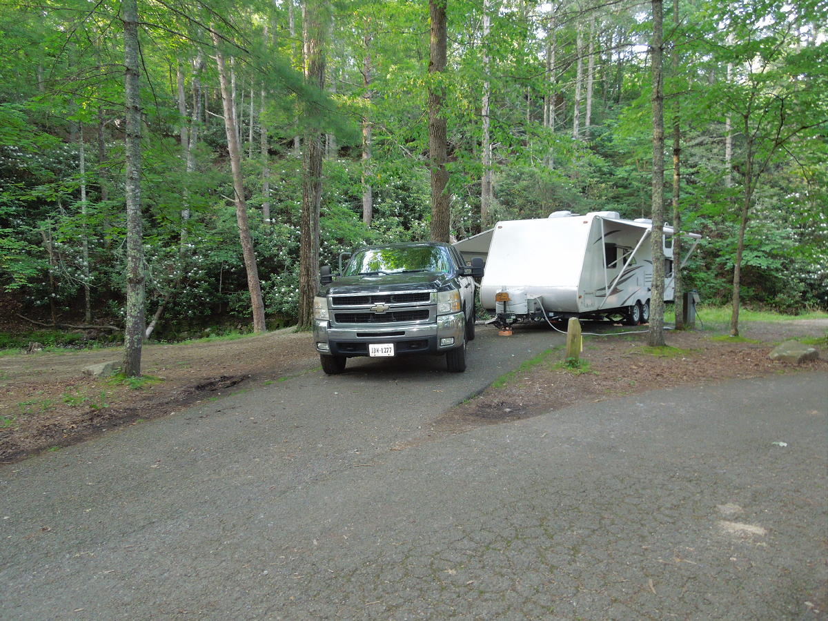 Douthat State Park. 2025/July - This time we were at White Oak, site 27 and probably wouldn't pick it again. The awning faced east into the trees. There was good morning shade and faint creek sound effects. But a hole in the tree cover let in a lot of hot afternoon sun on the front, streetside corner. My new White Oak picks are 31, 29 and 21. Site 31 has been rebuilt, widened and (mostly) leveled. It has all of my previously mentioned advantages and none of my previously mentioned disadvantages. Site 29 is at the far end of the campground, but also tucked into the woods. Neat! Not sure why I didn't previously notice. Site 21 is similar to 27, but with better tree cover. Of course my overall Douthat pick is still LS 8. The grill was open at the camp store, but we didn't try it. We did the Tobacco House Ridge Trail, the Backway Hollow Trail, out and back on the Brushy Hollow Trail and out and back on Beard's Gap Trail (great babbling brook scenery - do this one again). Attempted Beard's Gap Hollow Trail, but got tripped up on an unmapped connecting trail down to the parking lot at the end of the Flat Run Trail. All was blazed red whereas the map showed white. The park appears to be transitioning their blaze colors. Pay attention to the colors on the marker posts at the trail entrances. The maps may be wrong. Trail map. Facilities map. Visited the C&O Railway Heritage Center again. The 614 was gone and everything outside was a bit more dilapidated. They seem to have a severe volunteer shortage. But I still like to stop by and get a ticket and look around. Next time maybe check out Covengton. There may be a small museum at the old C&O Depot and a static steam locomotive 701 at the end of W. Main St. 2024/June - Trip canceled due to Life. 2023/June - This time we had Lakeside site 8 which was pretty neat with mostly a woods view, but with a bit of a lake view to the left. The site is tucked beside a western ridge and the sun is down by 5:30. Lots of shade all day. We had three days of rain and the only new trail we tried was part way up Buck Hollow trail to the overlook. And as usual I made a trip to the C&O Railway Heritage Center and the rail yard in front of the Amtrak station. 2022/June - This time we stayed in Lakeside 11 which was pretty neat with a great lake view. The sun was harsh from about 1:00 to 4:00, but the side tarp took care of that. This campground is way denser than we like, but that's probably dictated by its prime location. Yet there are only four sites, 10, 11, 17 and 19 that have great lake views. Sites 10 and 11 have really great views, but are more open. Sites 17 and 19 have maybe lesser views, but are way more shaded. Site 14 looks tempting, but is too small and crammed on top of 15. So if sites 10, 11, 17 and 19 are taken, Lakeside is probably not worth putting up with the density. One exception: Site 8 is big, at the end of a row, shaded, has a great woods view (with a bit of lake view) and is about as secluded as it's going to get at Lakeside. Lakeside also has the advantage of direct access to many trail options. We hiked Middle Hollow to Pine Tree to Blue Suck Falls and back down across Laurel View. Took about 2.5 hours and was too much for us old people. No more Blue Suck Falls. Backway Hollow was good and walking around the lake is good and takes about an hour. This was a split trip. After spending three nights at Lakeside we spent another three nights at White Oak 31. We had our eye on this site from last year thinking it would be secluded and have a great woods view. It did! But we failed to recognize the site's extreme grade which I calculated to be about eight percent! The hitch ended up about waist high or 37". Also it was a squeeze getting the awning out next to the lantern post. Really the site was exactly what we wanted, but the topology was just too weird. I used every block and chock I had (plus a big timber from the camp host) and still felt like we were going to roll away at any moment. Also, the site angles away from the rest of the campground. Instead of trying to turn around, I used the dump station down at Whispering Pines. I like site 27. Think I'd pick 27, 22, 23, 21, 20, 7 and 5 in that order. All of those sites have a good angle facing to woods and/or creek. But I think I'll try for LS 8 next time. The Wilson Creek trail was a good hike and goes all the way to the Ross Camp trail which isn't shown on every map. Still no cell signal without hiking up the mountain or driving back to town. Revisited the C&O museum again. Also, the Amtrak station is a great place to see some car kicking. 2021/June - Our first trip to Douthat. We stayed in the White Oak Campground and picked site 7 along the creek. We thought we might have some good creek ambiance, but the campground is so high up from the creek, it was a non-issue. Any of sites 5-10 would be similar, but 7 may be the best in the row. Our first choice might be site 31 which is off on its own and has the most isolated woods view. White Oak Campground is supposed to transition to site-specific reservations beginning in 2022. The Lakeside Campground would be neat, but is site-specific and I'm thinking the good sites will be difficult to reserve. I'd pick 10, 11, 15, 17 and 14 in that order. The Whispering Pines Campground has larger sites, but is more open and is way too far away. The Beaver Dam Campground looks okay, but is on the fringe of the park and the hiking trails. Great hiking (map). Many of the trails are strenuous and probably more than we'll ever cover. We did Beards Gap Hallow and across to Blue Suck Falls. We also did Tobacco House Ridge, Huff's, Heron Run and YCC. No cell signal at the campsite. The only cell signal we found was at the overlook halfway along the Tobacco House Ridge trail. The C&O Railway Heritage Center in nearby Clifton Forge was well worth the visit. Overall a great stay.