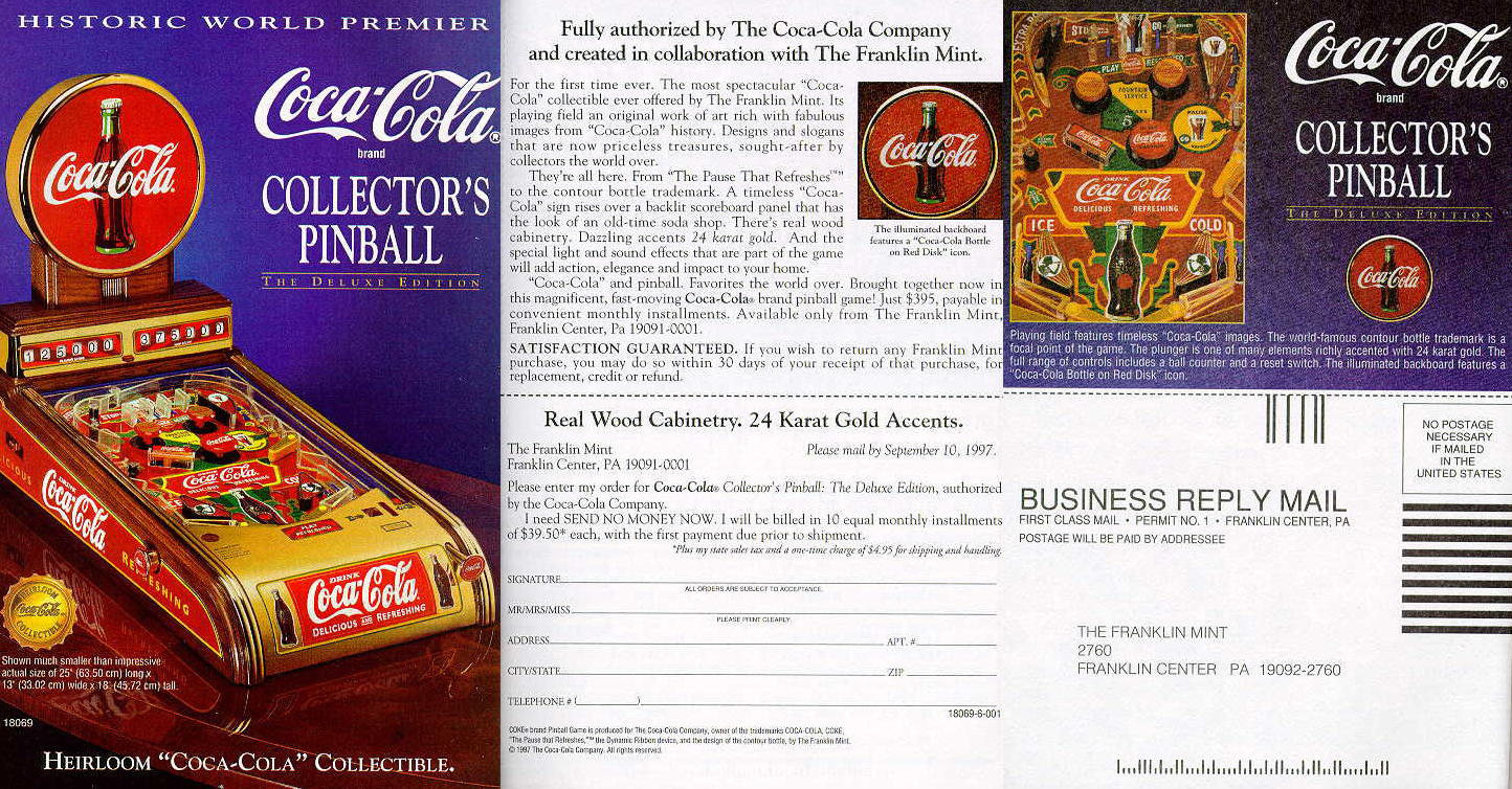 The Franklin Mint's Coca-Cola Collector's Pinball (click for larger images).