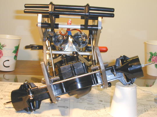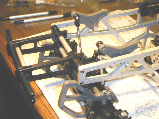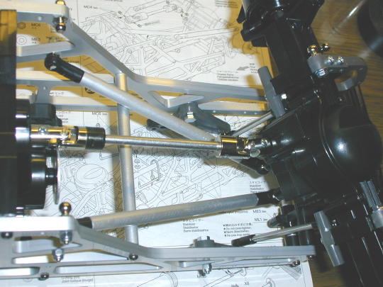 Then, with the frame up side down, I connected the upper links and the drive shaft.