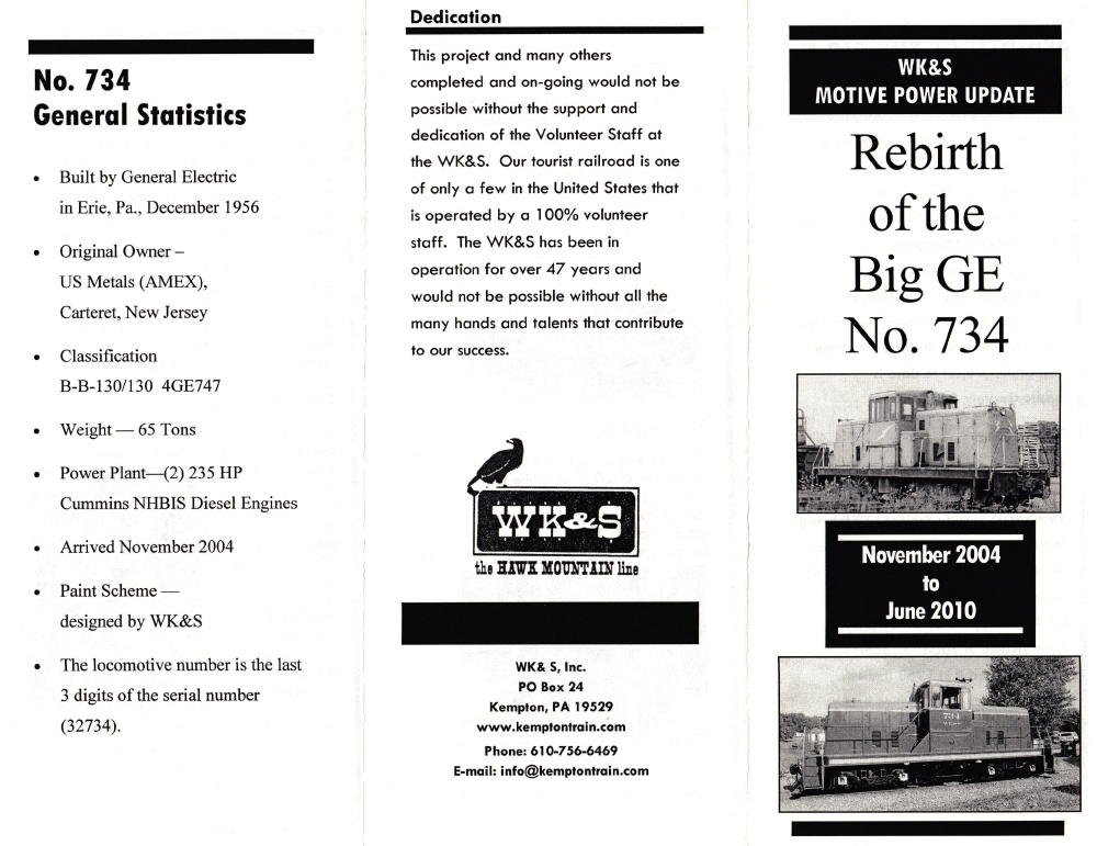 Here's a three-fold brochure commemorating the restoration of #734. Click image for larger picture.