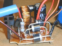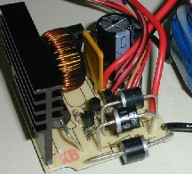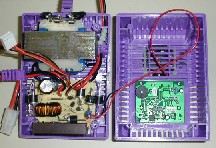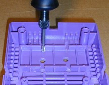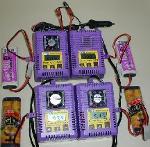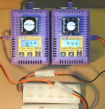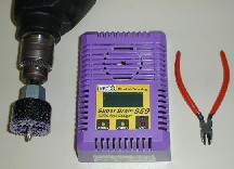 | Super Brain Surgery I recently purchased a pair of Super Brain 959 chargers. For the most part, I've been impressed with the chargers' performance, features and price. But, like most people, I'm baffled by the design's lack of effective cooling. After several consecutive charges, the charger case becomes too hot to touch and the display screen begins to malfunction. Many people simply setup a portable fan to cool the chargers. I decided to install a permanent cooling fan. For each charger I used one Micro Fan (Radio Shack 273-240, $11.99) and one 100 ohm, 1 watt resistor.   WARNING, the following modifications will void your warranty. I quote from the Super Brain manual, "MRC will not accept any charger for repair that has been modified in any way". Proceed at your own risk. First I had to make a modified screwdriver because the chargers are assembled with "tamper proof" screws. I simply used a cutoff disk in a Dremel to cut a slot in the blade of the screwdriver.   I dissembled the charger into three pieces: 1) the top of the enclosure including the display circuit board, 2) the power transformer and power supply circuit board, and 3) the bottom of the enclosure. The first modification was to cut the 12dc power cord from the circuit board and remove the cord. This, of course, has nothing to do with cooling, but I don't intend to use the dc input so it's more convenient to have one less cord dangling from the charger. If I change my mind, the cord will be easy enough to solder back on later.   There's no room for a fan on the inside of the charger, so I mounted it to the top of the top half of the enclosure. The directional arrow on the side of the fan should point up. That is, the fan will be drawing warm air from inside the charger and blowing it upward. Strangely, the fan blades are flush with the bottom of the fan frame. Accordingly, if I simply attached the fan to the enclosure, the fan blades would contact the surface of the enclosure and the fan would be unable to turn. Mounting the fan turned out to be the most difficult aspect of the project. Using a compass, I traced a circle onto the top of the enclosure equal to the diameter of the fan. Then I used my Dremel to carefully cut and grind away the top layer of vent louvers. I took my time with the Dremel and then cleaned up my cuts with a sharp hobby knife. Removing the top layer of louvers allowed the fan to spin freely and also opened up the vent for better airflow. I left the bottom layer of louvers intact for structural integrity.   Next I routed the fan wire into the enclosure and secured the fan to the enclosure with four zip-ties. I didn't use screws and nuts here because of the tight clearance between the enclosure and the power transformer. The zip-ties work just fine.   I connected the fan to the output of the bridge rectifier as shown. The voltage here is a filtered dc voltage of about 20 volts. That's a bit high for the fan so I inserted a series 100 ohm, 1 watt resistor. With the resistor, the fan voltage is about 12 volts. I simply soldered my connections to the diode leads as shown then I covered the resistor with a blue piece of shrink tube. Specifically, viewing the circuit board with the heat sink to the left and the power transformer to the right, the black fan wire is soldered to the left lead of the closest diode, the resistor is soldered to the left lead of the second closest diode and the red fan wire is soldered to the other end of the resistor. Be sure to observe proper polarity here. If you follow the circuit board traces, you'll see that the fan is connected in parallel with the big capacitor and that the polarity of the fan matches the polarity of the capacitor.   Next I set to work on the bottom half of the enclosure. I wanted to improve airflow around the bottom of the power transformer. I drilled two holes through the bottom of the power transformer tray and I used the Dremel again to grind four slots into the sides of the power transformer tray. Now the transformer has free air circulation around all four sides.   I also removed two pieces of foam tape from the top of the power transformer. The power transformer will be held firmly in place by the thickness of the zip-ties and will have better airflow. Finally, I reassembled the charger and tested everything.   Before my modifications the chargers got too hot to touch and the display would begin to malfunction after two or three charges. With the fan modification the chargers get warm, but never hot and the display always works well. I've used these chargers for hours at a time with no problems. My torture test was to consecutively charge ten packs at 4.5 amps. Again, no problem. Note that the fan will run so long as the charger is plugged in. However, the charger should not be left plugged in while not in use. The fans will also work if you decide to use the dc power input. Notice that the two fans I ended up with are of different designs even though they have the same stock number. The fan with the smaller center would not require the louver modifications I described above. However, I would still recommend removing the top layer of louvers to promote better airflow. If you have the choice, I'd also recommend buying the fan with the smaller center because it has more blade area and seems to move more air. I've already purchased an additional "small center" fan that I may use to replace the "large center" one. Disclaimer… I am an electronics amateur. I designed this circuit by way of tinkering and trial and error. There is no CAD system. There is no laboratory. There are no research assistants. There is no UL approval. I'll not be responsible for you blowing up your charger, burning down your house, electrocuting yourself or any other havoc you may cause in your attempts to duplicate this project. Hope someone out there finds this useful. Super Brain Surgery Update It's been more than a year since I purchased my first pair of MRC Super Brain 95