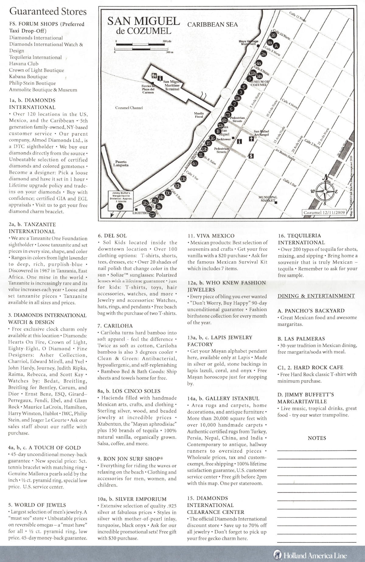 For each port of call we received a two-sided Recommended Shopping guide. We're not much into shopping, but if nothing else the maps were sometimes useful. The guides are shown below. Click thumbnails for larger images.