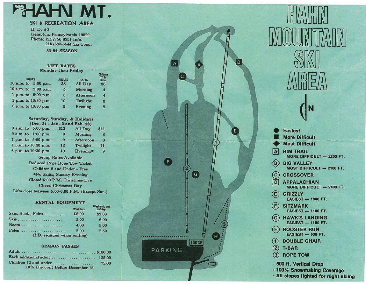 '83-'84 Hahn Mt. Brochure. Click for larger images. Images courtesy of Linda Peters.