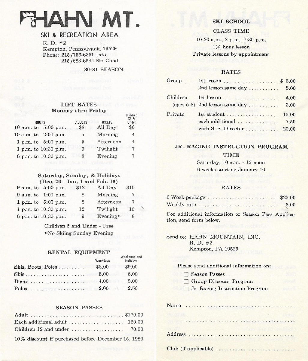 '82-'83 Hahn Mt. Brochure. Click for larger images. Images courtesy of Ed Conaway.