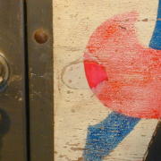 10/31/10: Refinished apron. The apron and shooter gage were badly faded and littered with blotchy touchups and rust marks. I tried a decal set from Pinball Rescue, an Australian company specializing in reproduction parts. I liked that the decals were pink, white and transparent. Transparent means that the blue in the graphic will perfectly match the base blue of the apron. First I took the shooter gage to the hardware store and picked a can of blue spray paint that seemed to most closely match the original blue. I was able to remove most of the blotchy touchups with paint thinner. Then I lightly sanded the parts, washed and dried them and shot them with three light coats of paint. The blue turned out to be a tad dark compared to my other Bally games from the era. But after 30 years of fade, who's to say which is the "right" shade? Finally I applied the decals as per the instructions and it all went off without a hitch. This was a simple project that made a big improvement.