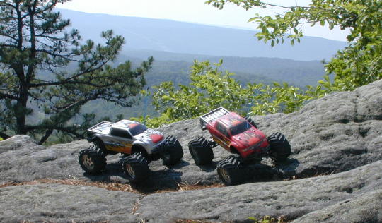 My wife and I each have a Traxxas E-Maxx. Hers is the silver, mine is the red. The next four pics are from the mountains of West Virginia.