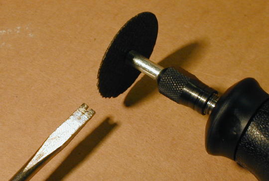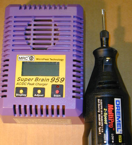 WARNING, the following modifications will void your warranty. I quote from the Super Brain manual, "MRC will not accept any charger for repair that has been modified in any way". Proceed at your own risk. First I had to make a modified screwdriver because the chargers are assembled with "tamper proof" screws. I simply used a cutoff disk in a Dremel to cut a slot in the blade of the screwdriver.