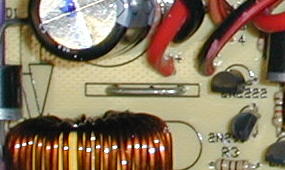 In retrospect, the Dremal/grinding procedure that I used on the first pair of chargers was more time consuming and far more messy. However, the hole saw method I used on the new pair of chargers was far less forgiving. It's very easy to break the louvers if the pilot bit or the saw gets hung up. If you have access to the precision of a drill press, I think the hole saw would be the superior method. After the upper enclosure was prepared, I installed the fans and wired them as before. Depending on the age of your Super Brain 959, the charger may or may not have a heat sensitive protection component on the lower circuit board. My previous two Super Brain's did not have this component. The new ones did. The first pic below shows the lower circuit board from one of my new chargers. The heat sensitive component is the thin orange component located between the big copper coil and the big capacitor. The second pic below shows the lower circuit board from one of my old chargers. The old chargers did not include the heat sensitive component. Others on the Internet have claimed that this component is too sensitive and that it should be removed. According to my own experiments, I agree. ![]()
